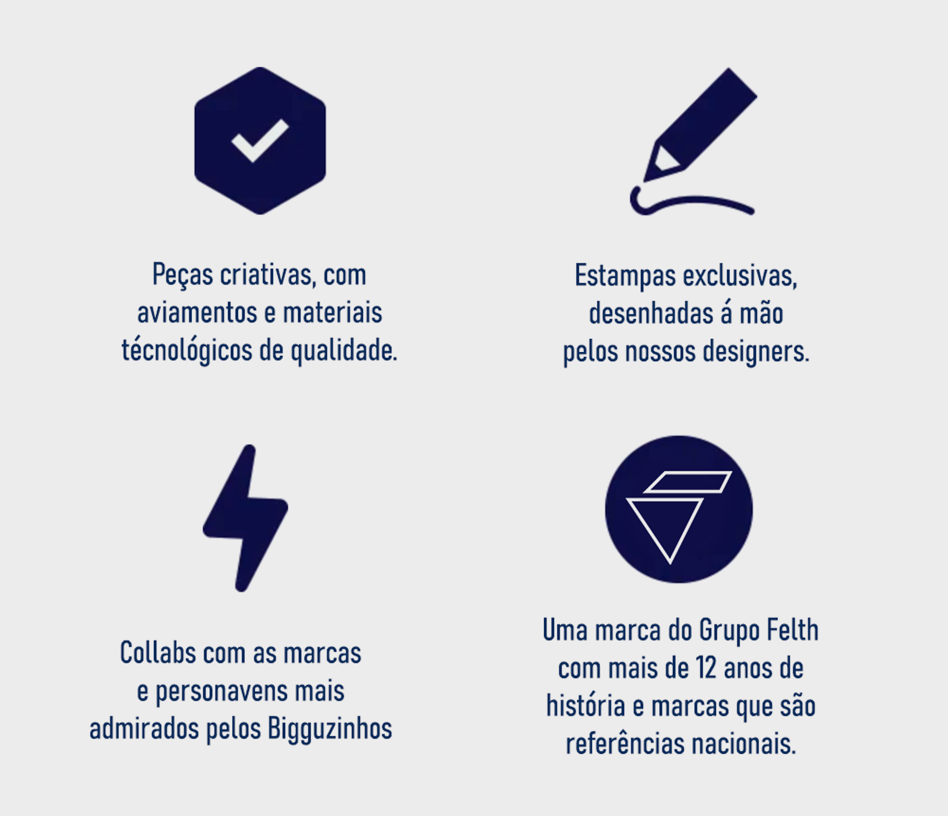 A BIGGU não é sobre bebês. É sobre o menino que já tem atitude, que se inspira nos homens fortes à sua volta e está construindo sua própria identidade. Nosso propósito é vestir esse desenvolvimento, com estilo, personalidade e confiança.