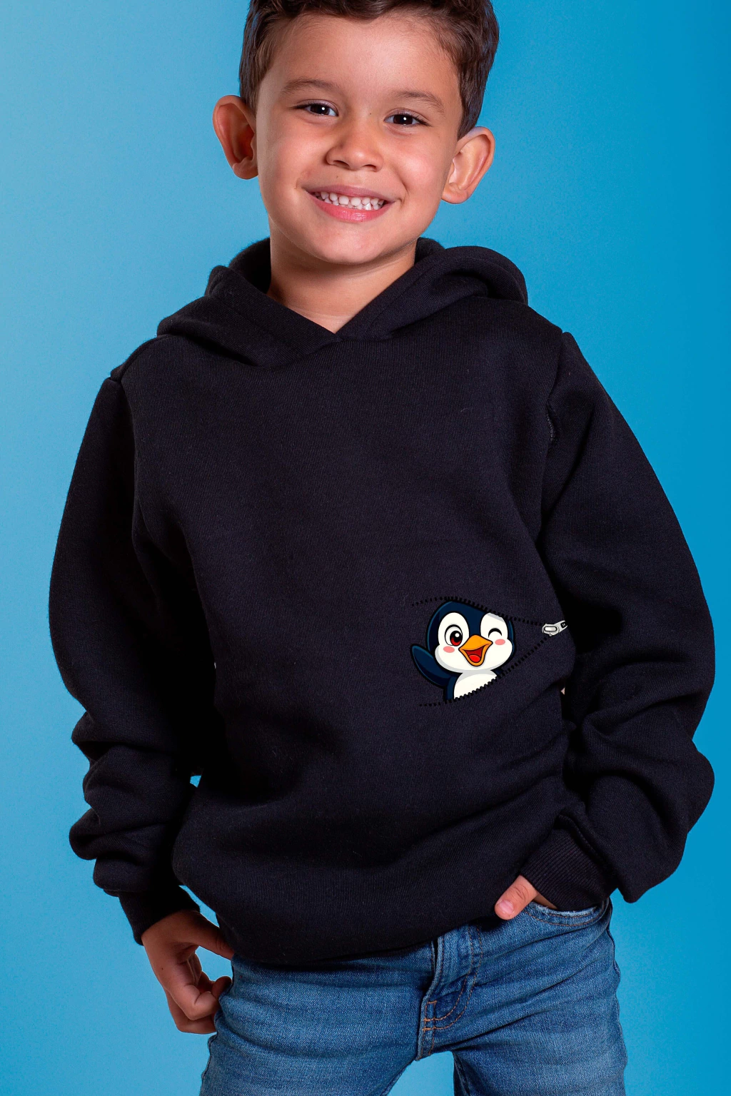 Possui capuz forrado, punhos e barra canelados, garantindo caimento impecável e conforto térmico ideal para dias mais frios.